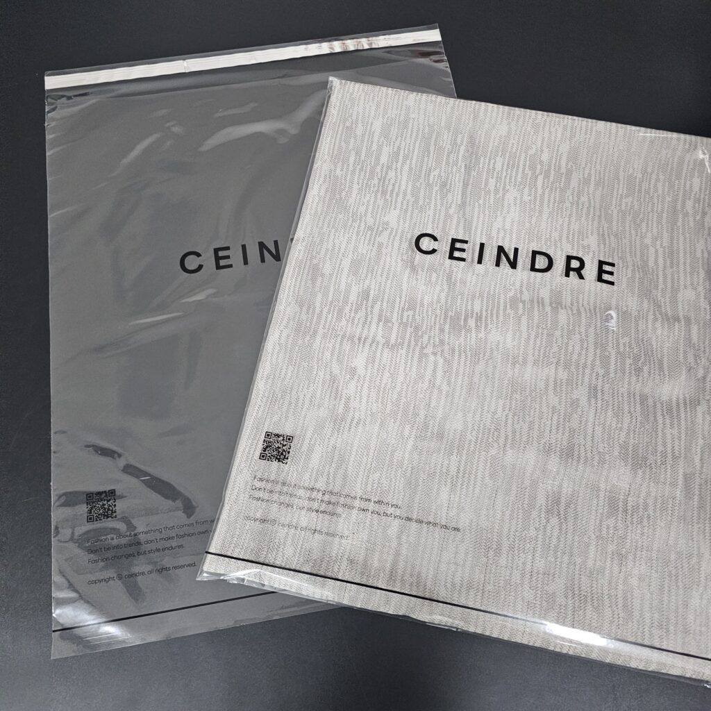글쓴이 admin / 3월 31, 2025 CEINDRE ◈ PP 폴리백 ◈ 40×50+4 ◈ 먹 1도 인쇄 #택배봉투 #폴리백 #의류포장 #PP #PE #OPP #의류 폴리백 제작 #인쇄폴리백주문제작 #의류투명비닐제작 #택배봉투 주문제작 #맞춤형 택배봉투 #로고 인쇄 택배봉투 #커스텀 택배봉투 #브랜드 포장비닐 제작 #패션브랜드 택배봉투 #쇼핑몰 포장비닐